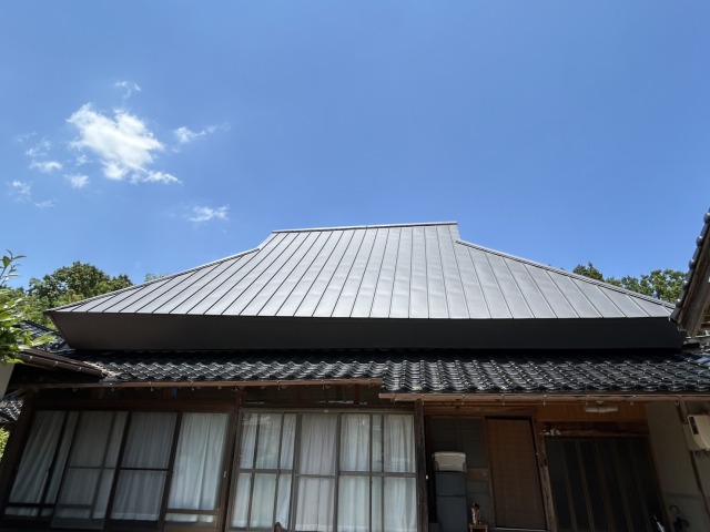 このたび、茅葺き屋根の住宅にて、ガルバリウム鋼板による屋根改修工事を行いました。