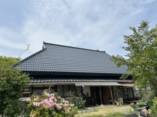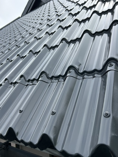 鋼板屋根の塗装を、シリコン塗料を使用し3回塗りで施工いたしました。