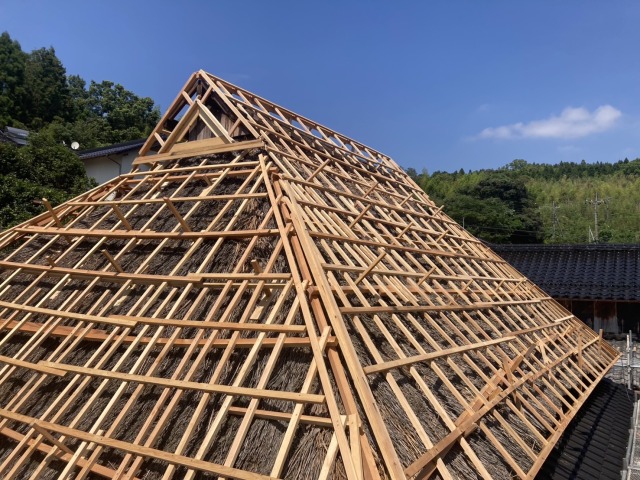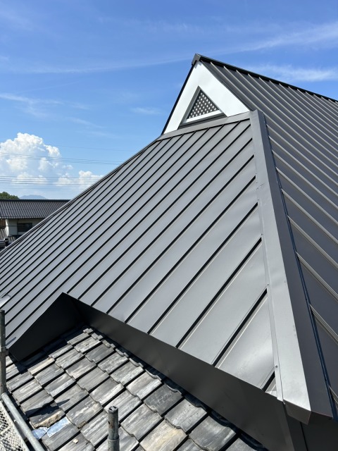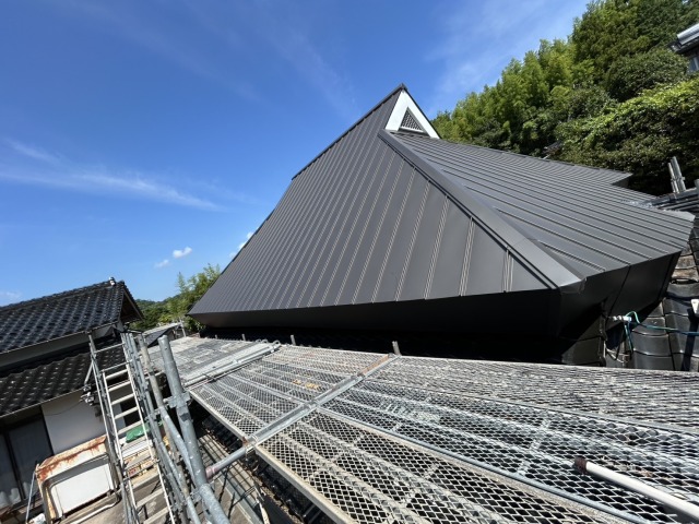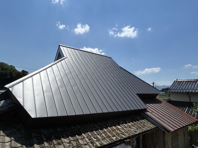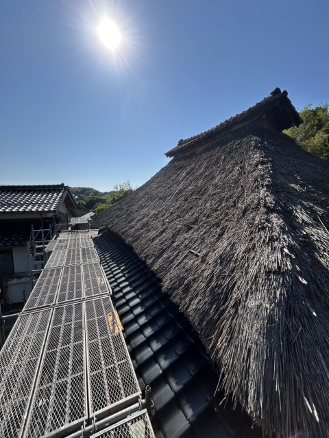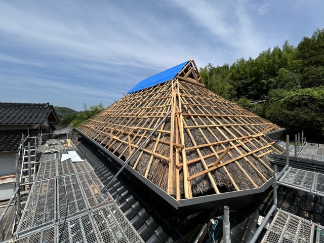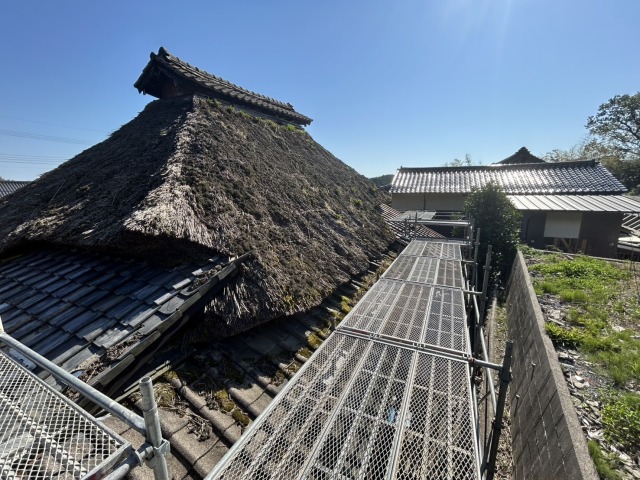 茅葺き屋根をガルバリウム鋼板にて改修工事を行いました。
